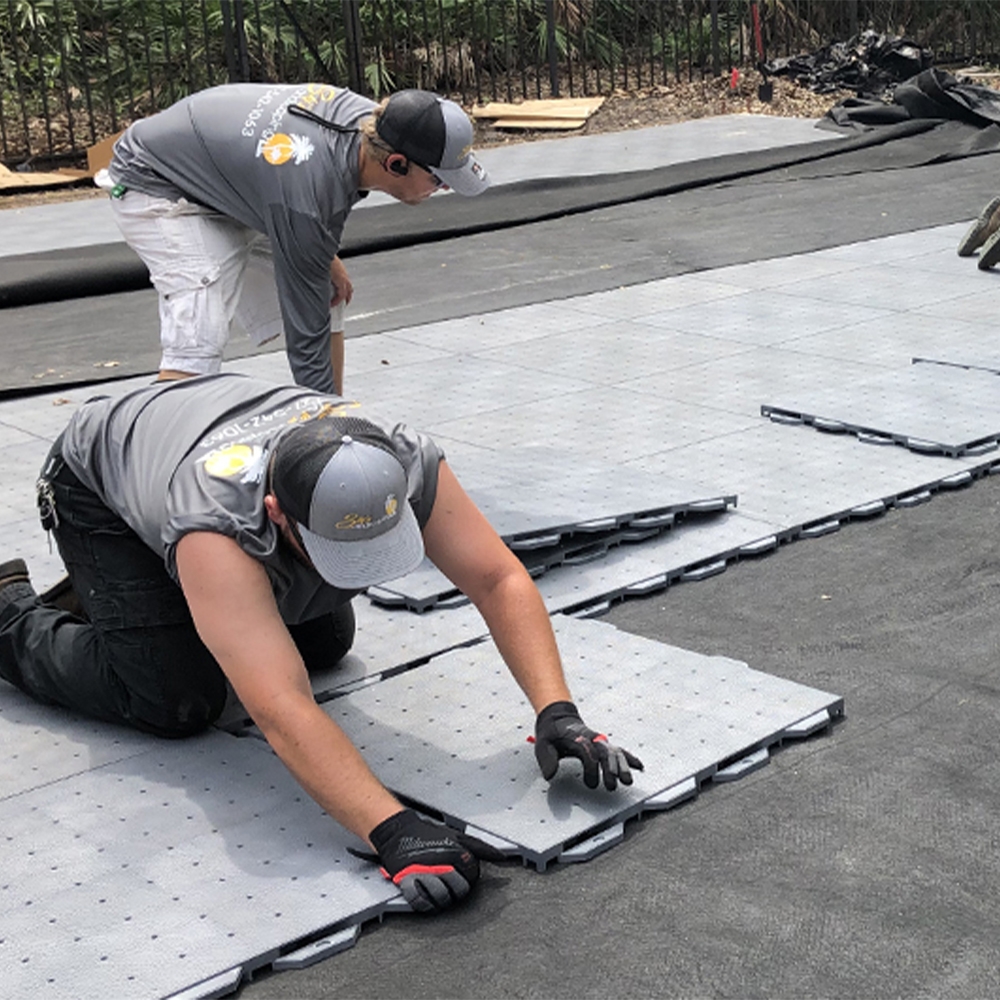 garage tiles fabric landscape installation