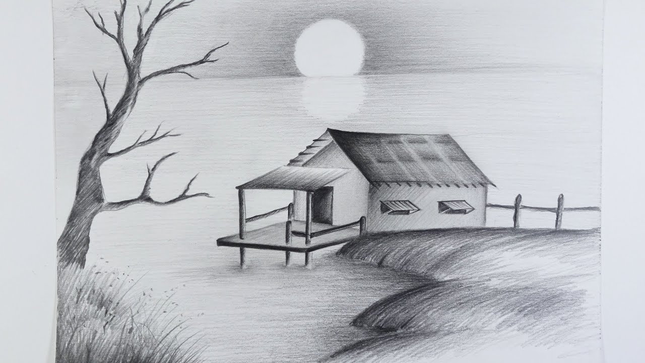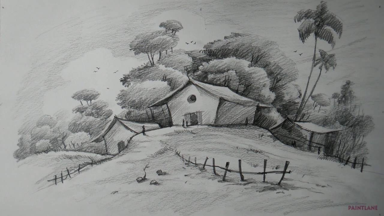 How To Draw Easy And Simple Landscape Pencil Sketch Scenery YouTube