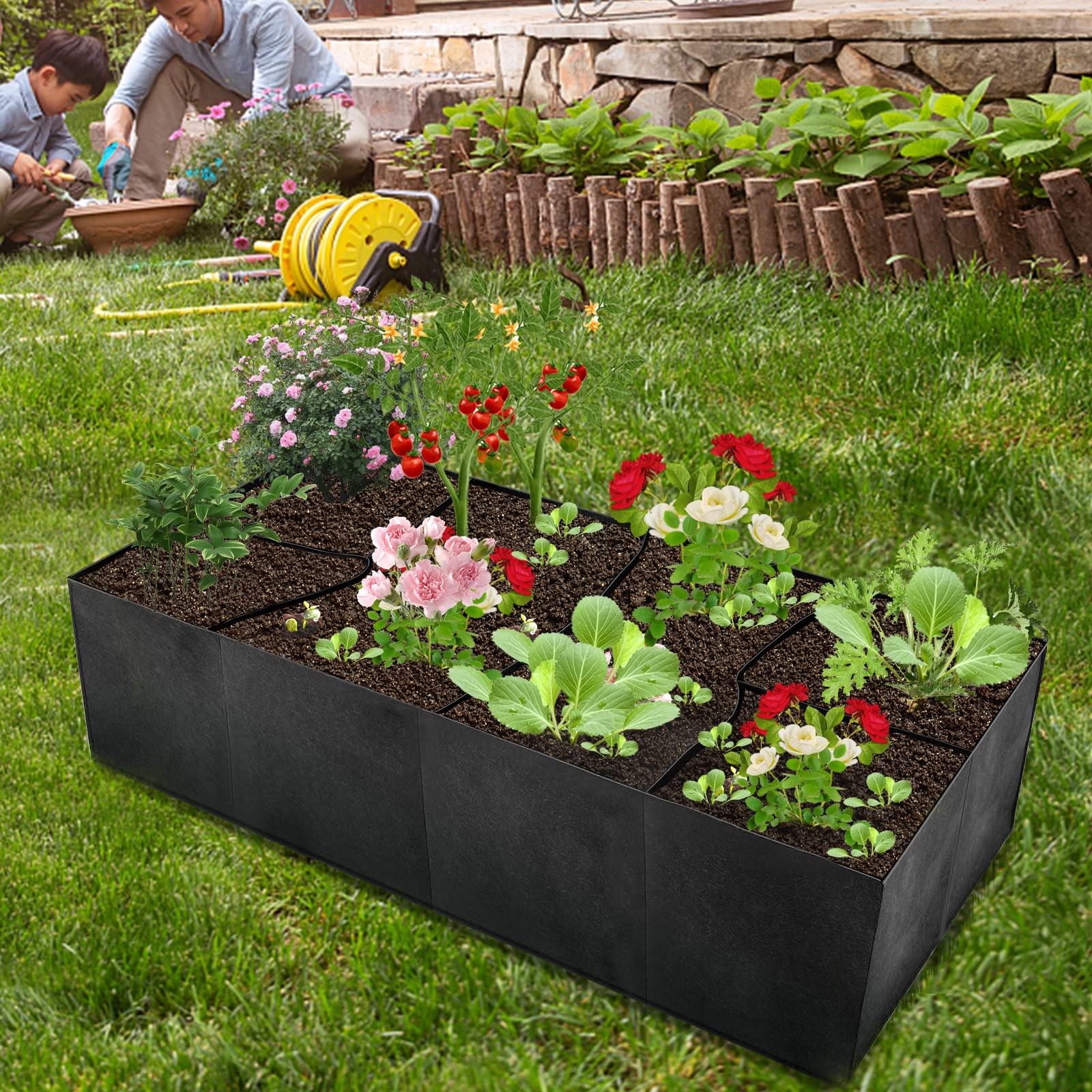 Amazon HYLOOD Fabric Garden Raised Bed Divided Raised Vegetable Bed Rectangle Planting Container Garden Boxes With 6 Holes For Plants Potato Flowers Black 35 4×70 9×11 8inch Patio Lawn Garden