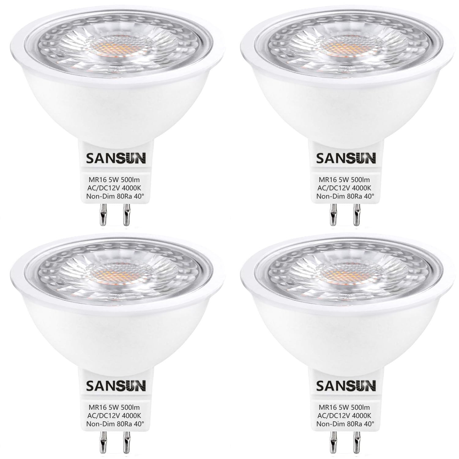 SANSUN 5W MR16 LED Landscape Light Bulbs Low Voltage 12V 50W Halogen Replacement For Outdoor Landscape Spotlight And Track Light GU5 3 Bi Pin Base Daylight White 4000K Non Dimmable Pack Of 4 Amazon