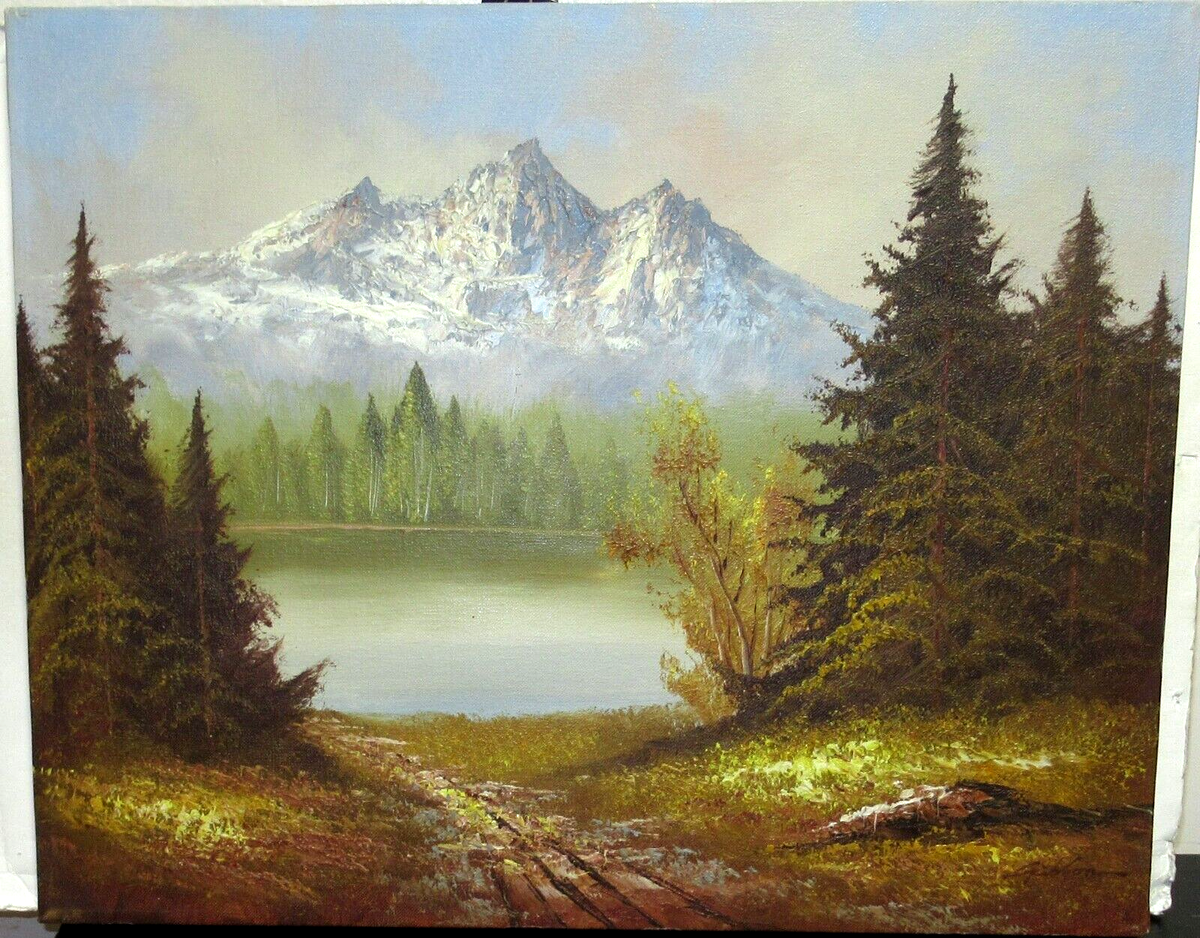 GIBSON SNOW MOUNTAIN RIVER LANDSCAPE ORIGINAL OIL ON CANVAS PAINTING EBay