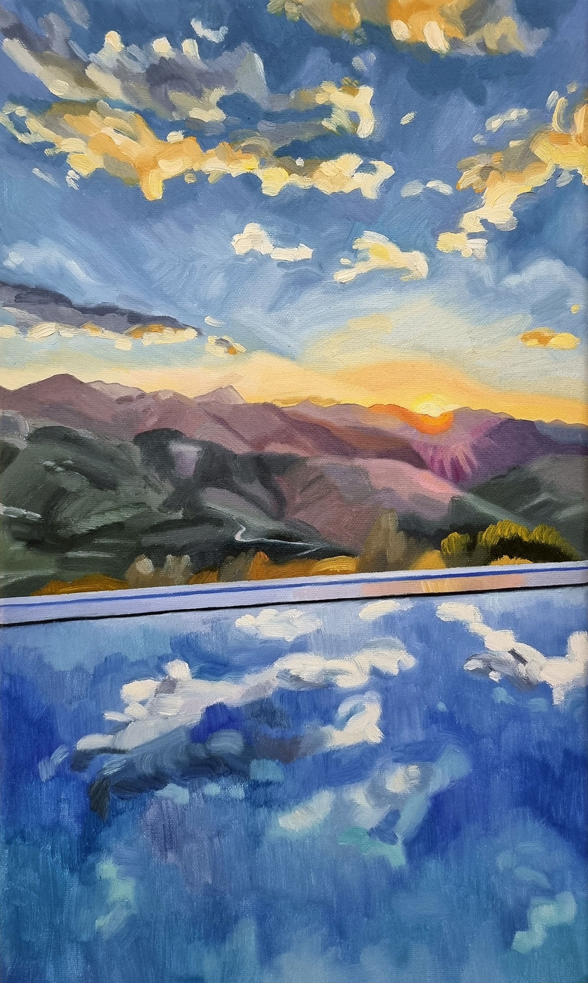Original Art Sunrise By The Pool Landscape Painting ON SALE