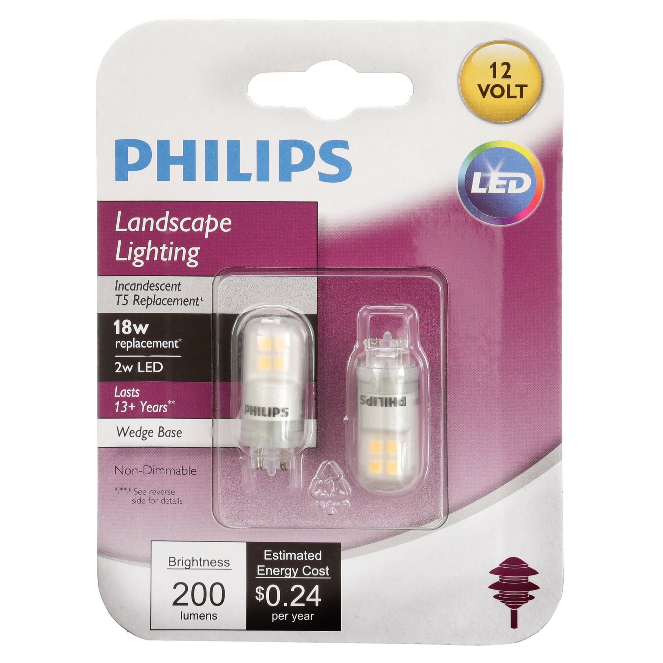 Phillips LED T5 18 Watt Landscape Light Bulb Clear With T5 Wedge Base Non Dimmable 2 Pack Walmart