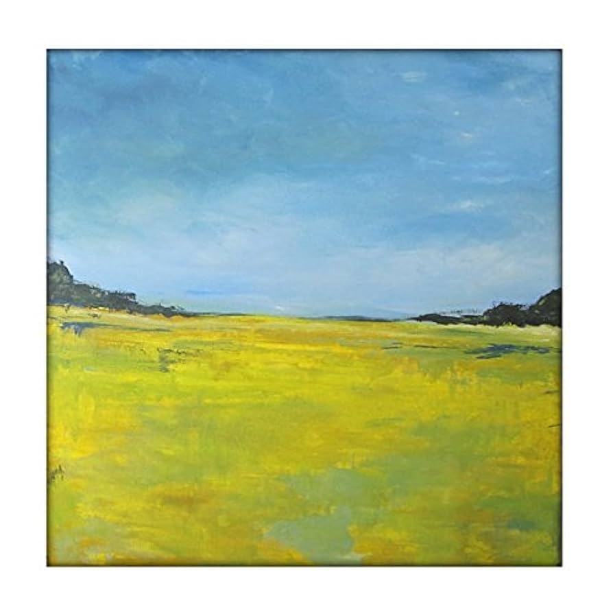 Amazon Abstract Landscape Modern Minimalist Acrylic Painting On Canvas 40×40 Yellow Greens Blues Handmade Products