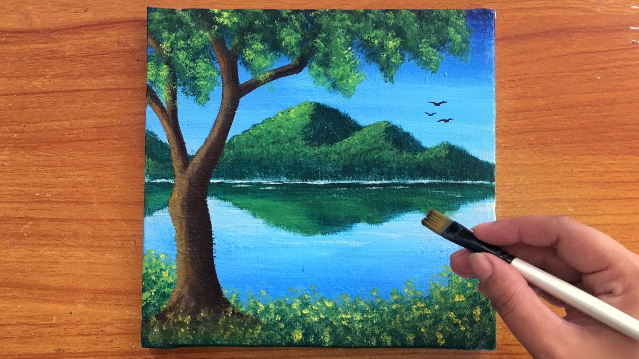 Easy Landscape Painting For Beginners Lake Painting Acrylic Painting On Canvas YouTube