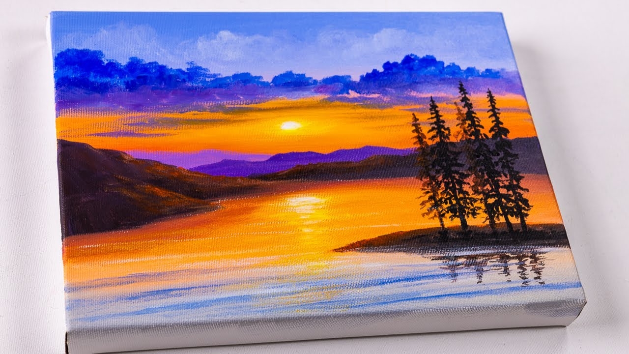 Sunset By The Lake Acrylic Painting Landscape Painting Easy Painting YouTube