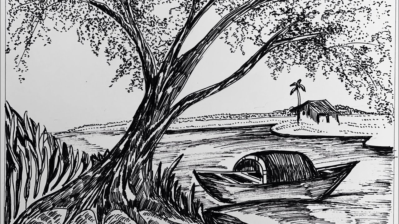 How To Draw A River Side House With Easy Pen Drawing Art With Pen YouTube