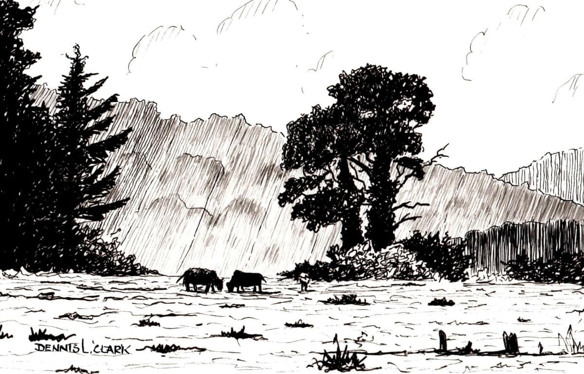 pen and ink landscape drawing