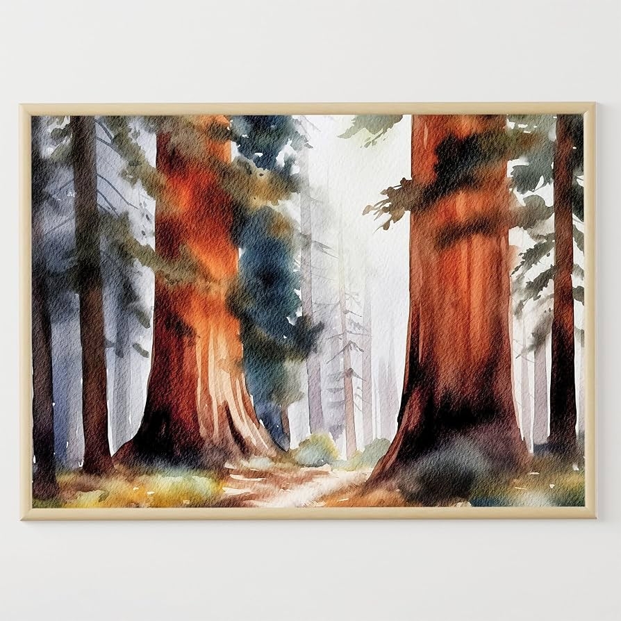 Amazon Generic Redwood Forest Painting Sequoia Watercolor Poster National Park Art Print California Landscape Woodland Wall Art Unframed 200 White Posters Prints