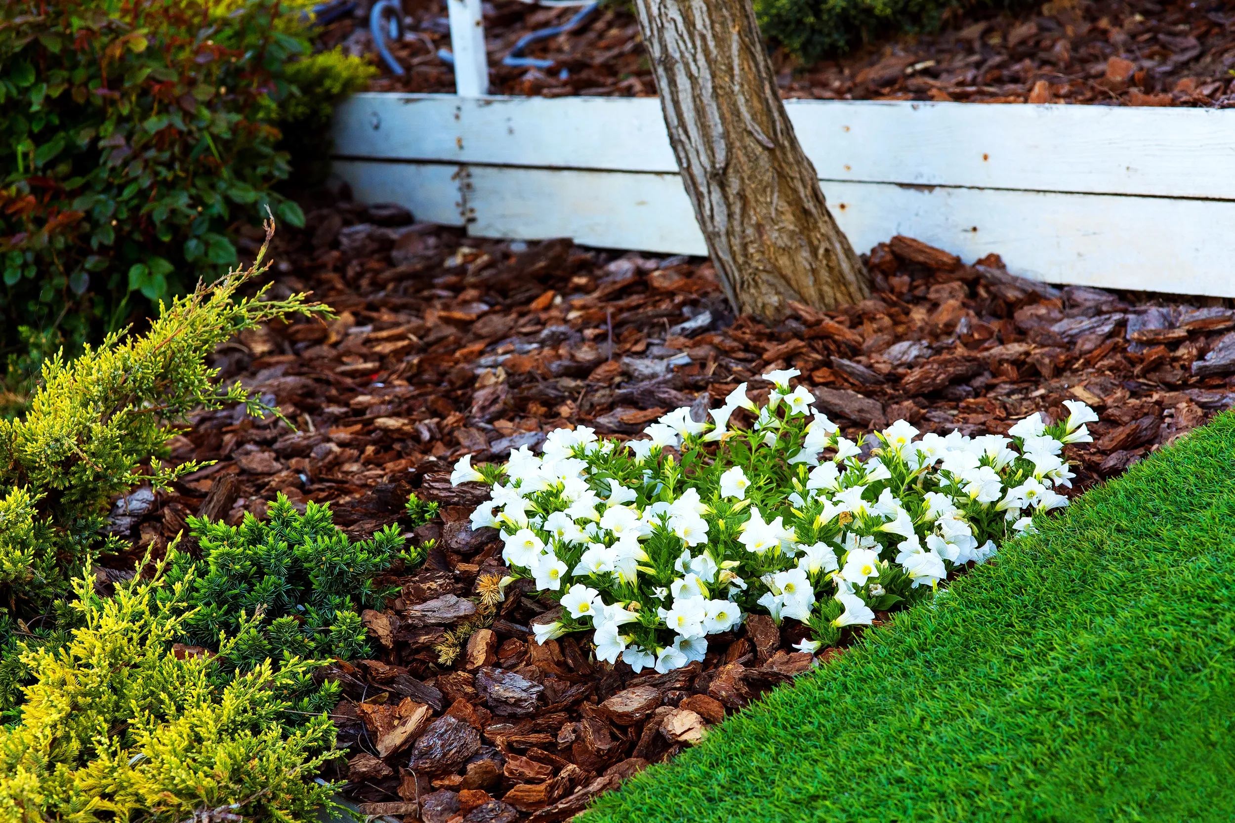 Mulch Bark Wood Chips Or Rock Crewcut Lawn Garden